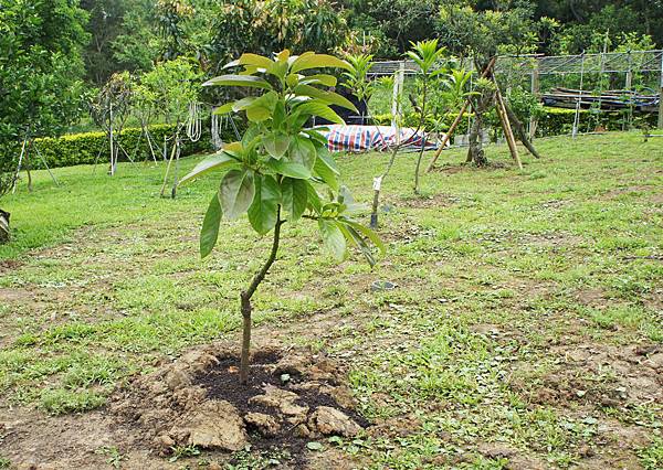 去年酪梨樹根壞葉枯萎,尋覓酪梨成樹替補,只是一直找不到較大的樹,與其時間空耗只得買株樹苗,當然記取教訓,酪梨樹是淺根怕泡水,今補植不再植於平坦處,上調於坡地減輕泡水機率。