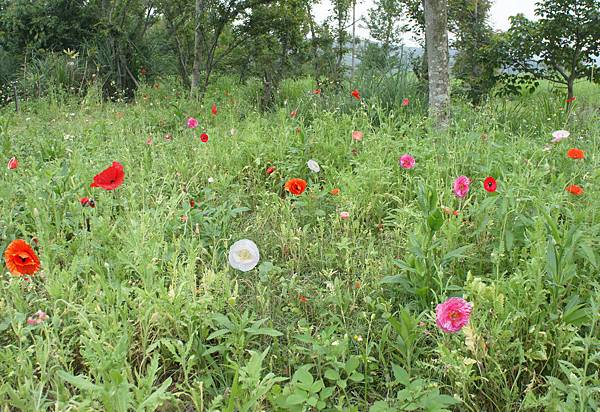 五月時虞美人零星開了些花,但與理想中之花團錦簇失之千里,未幾就被雜草淹沒,六月天熱了全部乾枯,慘不忍睹只得全部割除。