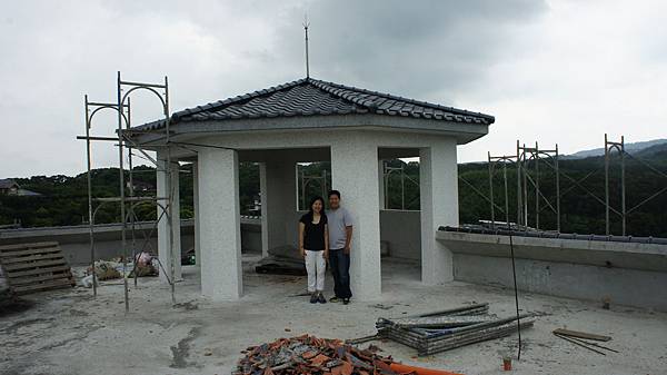 農舍興建半年已屆竣工階段,妹婿首度蒞臨視察其設計之作品,老農既歡欣又緊張害怕,因為有部份未向設計師報備,自作主張變更,陪同內外上下邊看邊簡報解說,有些地方設計師雖不認同,也只有搖搖頭說:「業主歡喜就好」,妹婿伉儷對施工品質尚稱滿意。