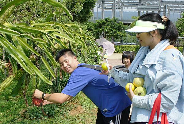黃金果.芭樂…等許多水果成熟,也逢香蕉樹上黃,現摘現吃得皆大歡喜,來客是都市人,首見各種水果之樹,驚訝它們原來是這樣子。