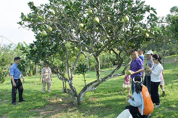 文旦也循例註記樹號,要求吃後要評鑑打分數。各賓都對果甜風景優美讚不絕口。