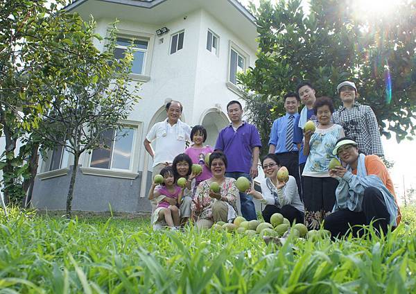 五年前為農,首植作物是甘蔗,工作累時砍根來吃,大口的啃大快朵頤,同時補充能量及水份非常舒爽,三年前用牙齒撕皮時,「喀拉」一聲把門牙扯斷掉,牙醫瞭解原因後也知道楊老農還有文旦,就約要到春天採文旦,但每年時間喬不壟,直到今年才首度成行,醫師護士及家屬十人,成為農舍完工後的第一團客人。
