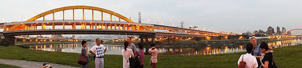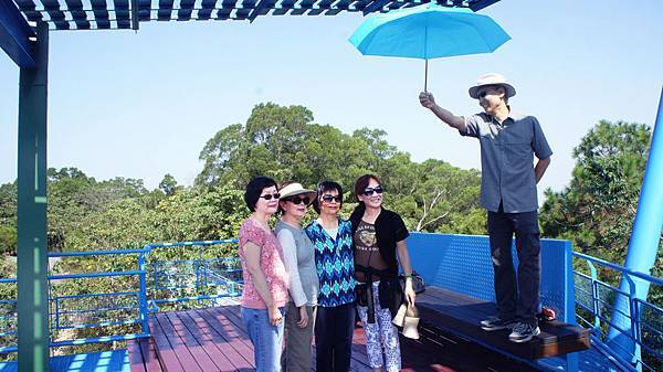 到虎頭坎看春天農莊,現今已建幢幢農舍,由吊橋上一目瞭然,不再會找不到農地所在,C.M體貼女同學怕曬,還高高舉傘擋陽光,我也有樣學樣,只惜傘不夠大。