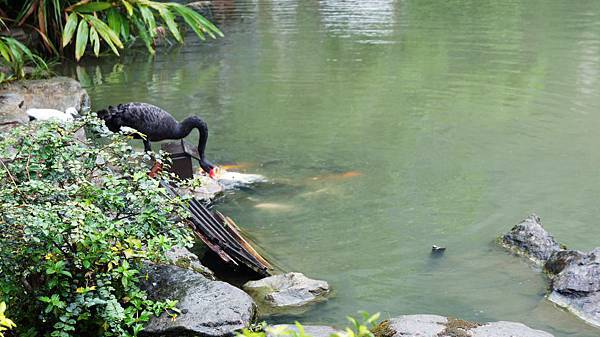 後續行程包遊覽車,第二天遊南園,都是仿古建築以及山中園林的造景,像是走入山水畫。只因趕AM7:30集合,沒用早點僅穿單薄運動衫,山林中天冷又下雨飢寒交迫,難以領會山光水色,及天鵝喂錦鯉之詩情畫意,於紀念品櫃台買條女用披肩當袖子,總算撐過來沒有感冒。