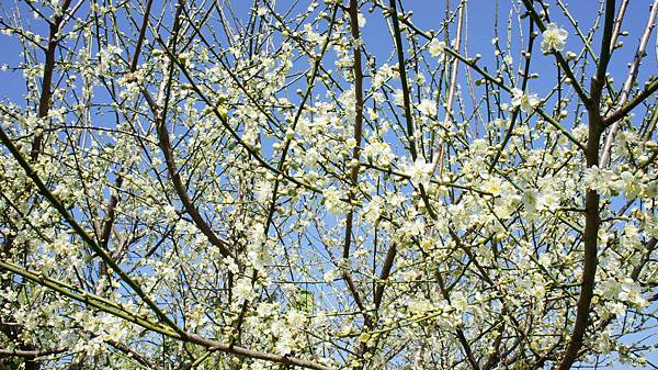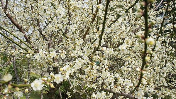 六年前種植不及半人高之大梅,如今已超過兩人高,開花也是越來越多,今年每枝節滿滿都是花,恰如詩云:一樹寒梅白玉條,鄰居們近水樓台紛紛先賞美景,聞濃郁花香,聽群蜂飛舞嗡嗡聲。