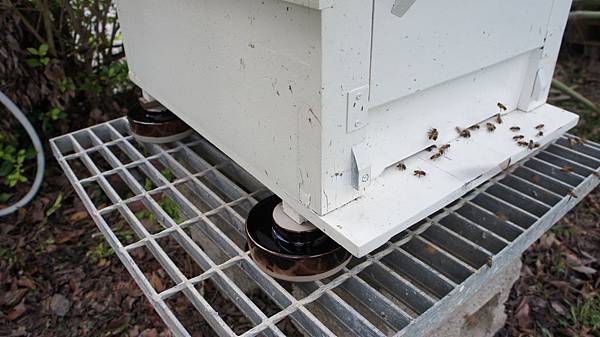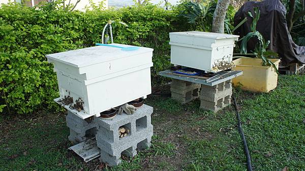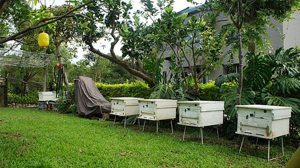 上篇報導天上掉下來的禮物,收養了一箱野山蜂,憐惜其初來新居家無存糧,裝一盤砂糖放置箱內,不料引來大群黑蟻,蜂寡不敵眾蟻之侵凌,野山蜂棄巢而逃,才當十天的蜂農只剩下一只空蜂箱。養蜂已起步,書也讀了幾篇,養蜂工具及蜂箱棄之可惜,並且西側園夢之莊種植各種藥草,入秋後黃甘菊及不知名花開滿山坡,蜂之食物花蜜及花粉豐沛,於是向通霄蜂農買進一窩義大利蜂裝進空蜂箱,前車之鑑在箱腳設置水盤防蟻。